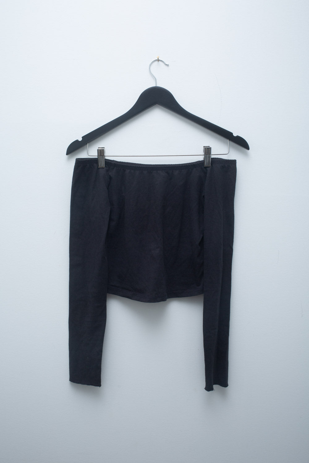 Y2K Black Off-Shoulder Long Sleeve Top – Vintage 90s Minimalist Stretch