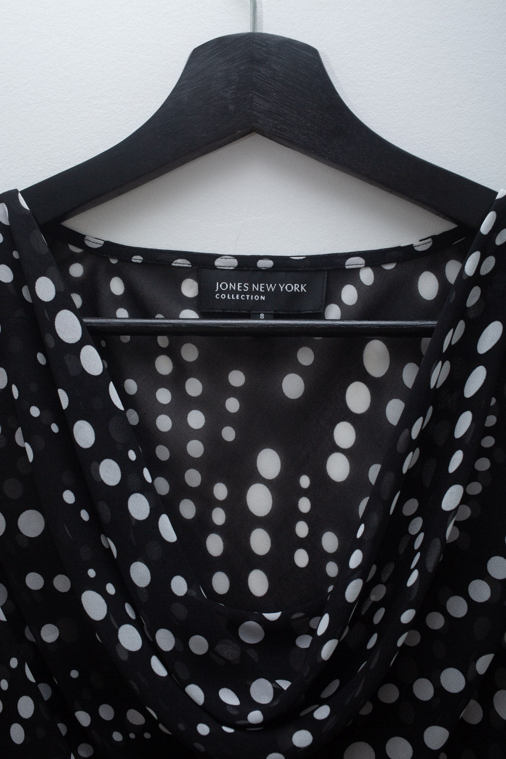 Jones New York Black & White Polka Dot Blouse – Vintage Draped Cowl Neck Top