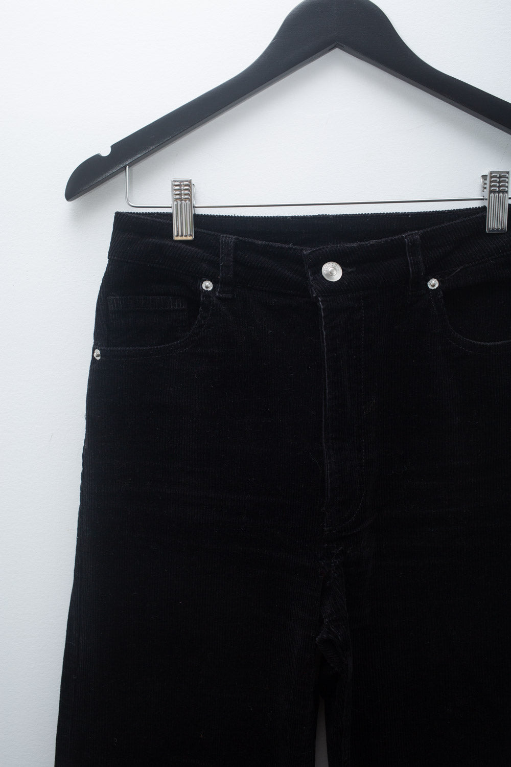1970s inspired Black Corduroy Pants – High-Waisted Wide-Leg Trousers