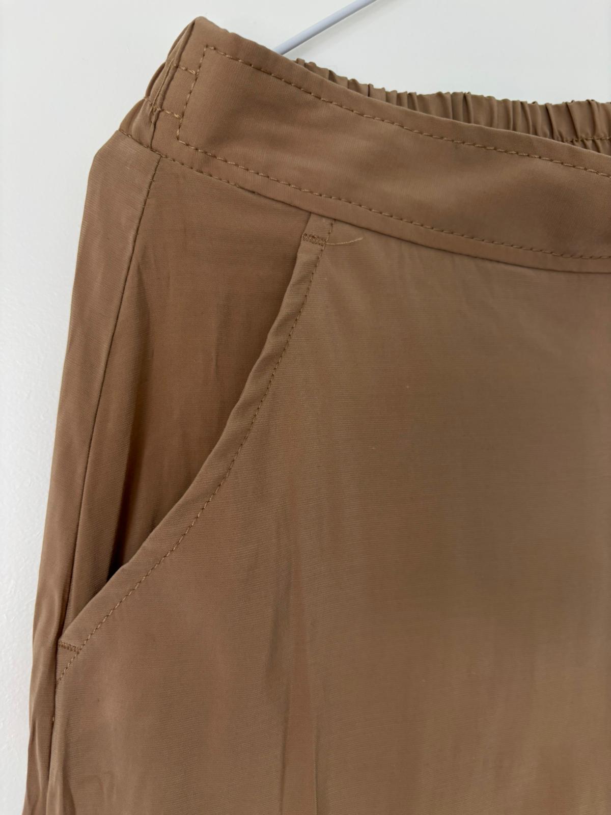 High-Waisted A-Line Midi Skirt in Camel Brown size 8