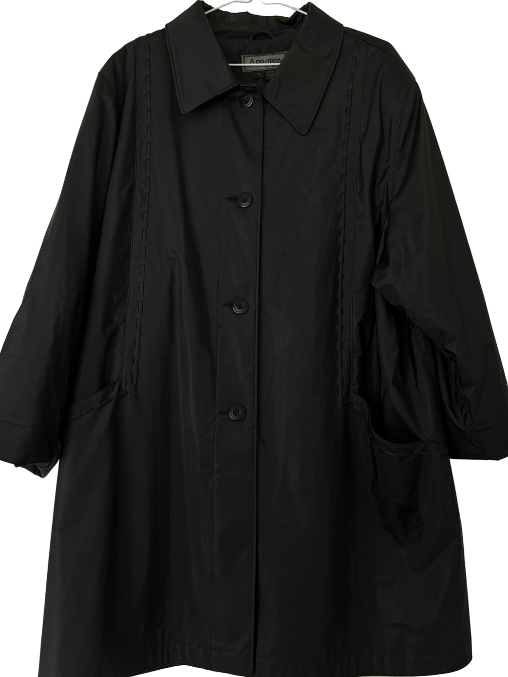 Vintage 90s Black A-line Coat - Apropos - 1X - Water Resistant